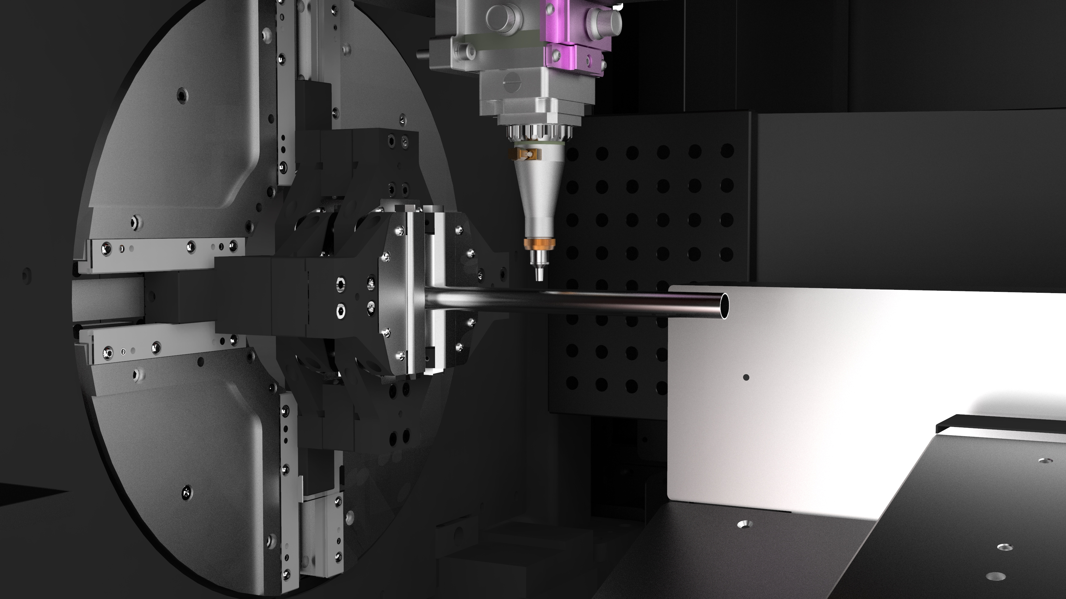 ◆ 四卡盤靈活換向切割,支持整管切割下料。