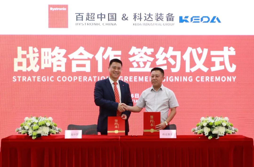 2023年6月6日,百超中國(guó)與科達(dá)裝備在百超天津工廠舉行戰(zhàn)略合作簽訂儀式。百超集團(tuán)中國(guó)區(qū)總裁游松博士、科達(dá)裝備總經(jīng)理周國(guó)勝先生分別代表雙方簽約。百超集團(tuán)首席執(zhí)行官Alex Waser先生共同見證了這一美好時(shí)刻。