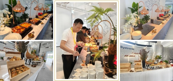在活動(dòng)期間,我們特意為尊貴的來賓們準(zhǔn)備了一場豐盛的自助餐盛宴,以及各式各樣的精致糕點(diǎn)與飲品,旨在通過美食傳遞百超對(duì)每位來賓的誠摯歡迎與熱情款待。我們欣喜地看到,來賓們歡聚一堂,在美食的陪伴下暢享歡樂時(shí)光,共同分享這份溫馨與美好。