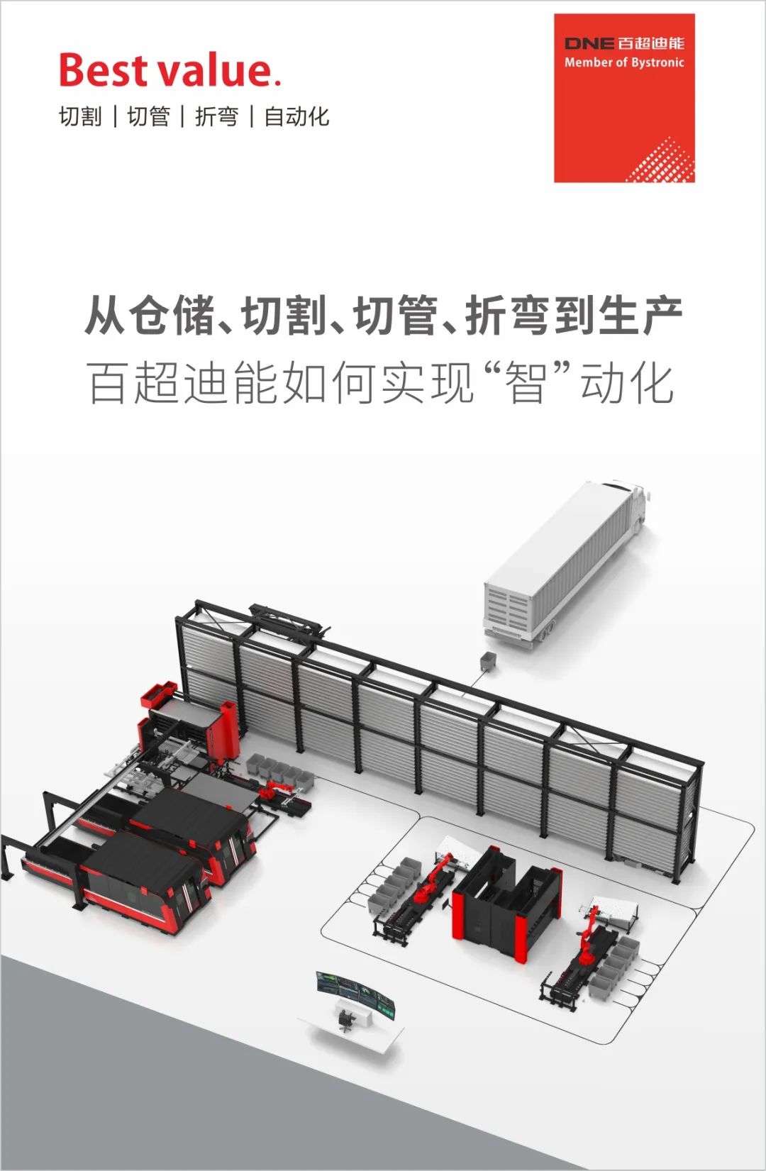 從切割、切管、折彎到自動化,百超迪能激光已經(jīng)勾勒出一個由自動化演變?yōu)椤爸恰眲踊纳a(chǎn)愿景,將助力您保持競爭優(yōu)勢,實現(xiàn)最佳價值。
