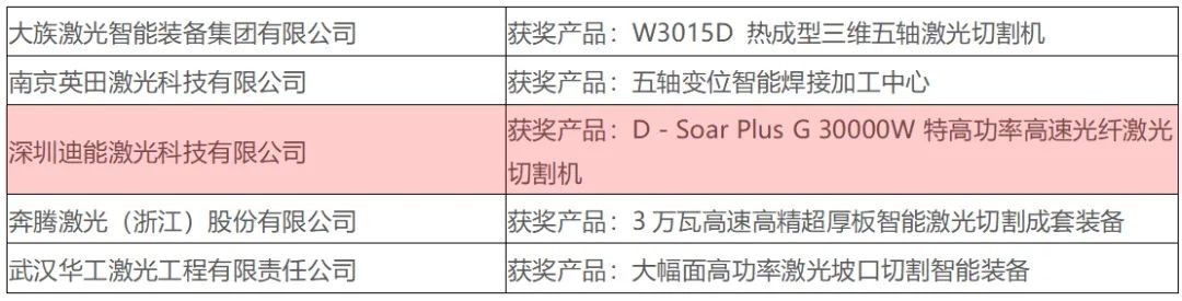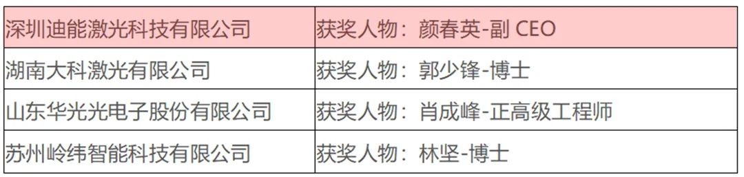“激光智能裝備技術(shù)創(chuàng)新獎”獲獎名單