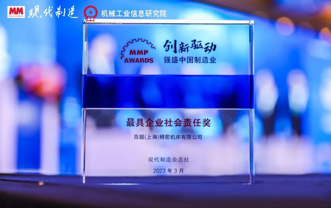 2023年3月10日,由全球知名傳媒集團弗戈工業(yè)媒體MM《現(xiàn)代制造》舉辦的“創(chuàng)新驅動·強盛中國制造業(yè)——杰出本土化服務商&最具企業(yè)社會責任(CSR)獎”頒獎典禮在上海盛大舉行,百超中國雙品牌(百超、百超迪能)憑借杰出產品、優(yōu)質服務、社會責任的突出表現(xiàn),以及在長期經營發(fā)展過程中持續(xù)節(jié)約能源、降低碳排放的品牌形象,榮獲“杰出本土化服務商&最具企業(yè)社會責任獎”。